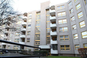 (Ansicht mit Fassadensanierung und Dachaufstockung) |