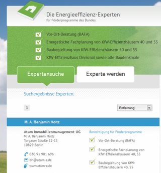 Zudem empfiehlt die KfW die hier gelisteten Experten bei der Aufnahme von KfW-Krediten (Kredit-Programm-Nr. 151 und 152) bei energieeffizienten Bau- und Sanierungsvorhaben mit einzubeziehen. Die KfW ist sich sicher, dass Bauherren hier von Beratern "qualitätsgesicherte Leistungen der Energiesparberatung, Planung und Baubegleitung" angeboten bekommen. Wir teilen diese Meinung und möchten Ihnen deshalb unser Know-How im Bereich der Energieeffizienz, Erneuerbaren Energien und der Frage der Wirtschaftlichkeit von Bau- und Sanierungsmaßnahmen auch auf diesem Weg anbieten.